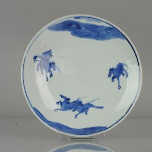 Antique Chinese ca 1600-1640 C China Plate Horses Kosometsuke Ming