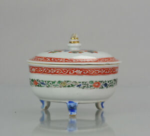 Rare lidded Famille Verte bowl/jar on tripod. Kangxi period.